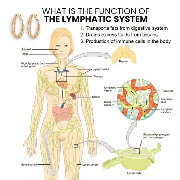 “I've been dealing with a pesky neck lump, swollen lymph nodes, and a bloated stomach for years, and it's been a total pain. But these Lymphatic activity oval earrings do the best thing they supposed to do, they're seriously the best lymph cure accessory I've come across. Not only do they help with the painful inflammation, but they also provide relief for my swollen lymph nodes. It's like a weight has been lifted off my shoulders, or should I say, off my ears! If you're struggling with similar issues, I highly recommend giving these earrings a shot. You won't regret it!” - Marlies Harris